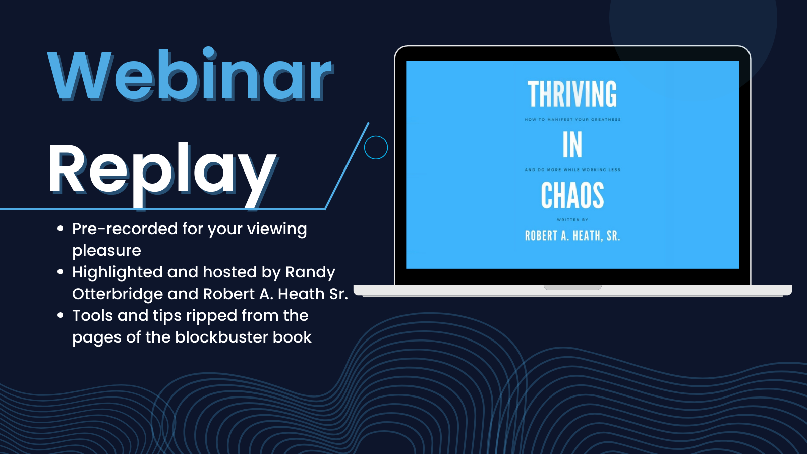 Great Leadership requires you to be able to function in chaos. This webinar replay highlights ways you can crush chaos so you can thrive in an ever-changing world. Featuring best-selling Author Robert Heath Sr. and The Monetize Your Life Guy Randy Otterbridge, you'll delight in points raised as ways to get back to doing what you do best—leading and thriving. Lead Better. Thrive More. Enjoy this today...
